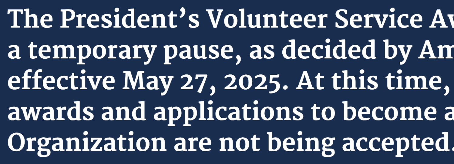 As of May 2025, the 22 year legacy of civic participation on part of the PVSA was halted when the Trump administration placed the award on a temporary pause. Now, schools and community organizations alike have to find other ways to keep the tradition of volunteerism alive.